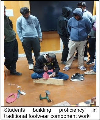 The workshop familiarized students with age-old techniques, tools, and processes involved in making Nagra, including material selection, pattern cutting, hand stitching, sole preparation, shaping, and finishing, while highlighting the cultural significance of this craft.