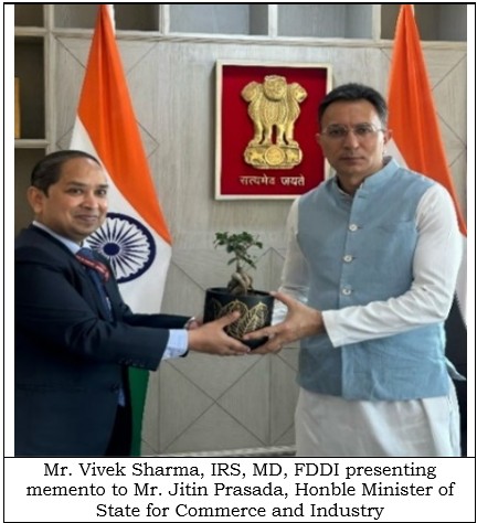 Mr. Vivek Sharma, IRS, Managing Director (MD), FDDI met Mr. Jitin Prasada, Hon’ble Minister of State for Commerce and Industry on 24th March 2025.