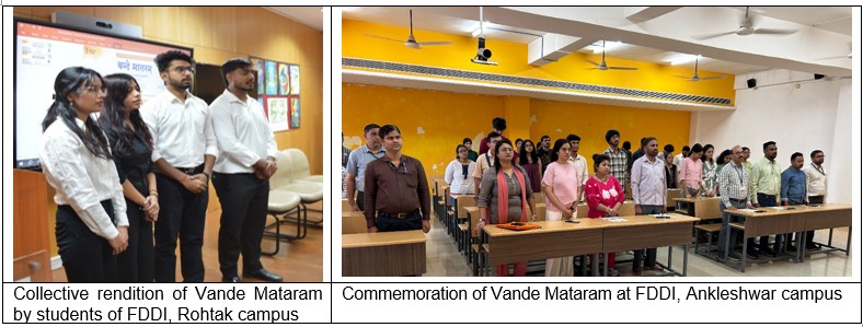 As part of the nationwide commemoration launched by the Ministry of Culture, Government of India, to mark 150th years of “Vande Mataram” (1875–2025), FDDI organized a Mass Singing of “Vande Mataram” across its Head Office and all 12 campuses—Noida, Fursatganj, Chennai, Kolkata, Rohtak, Chhindwara, Jodhpur, Patna, Ankleshwar, Hyderabad, Banur, and Guna.