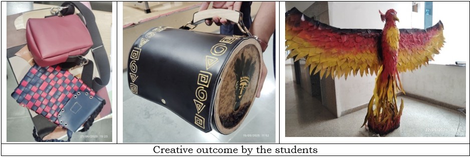 As part of their second-semester coursework, Foundation Batch–2024 students demonstrated their artistic craftsmanship by designing and developing captivating utility products under various subjects, including Design Project–2, Leather Technology, Design Thinking & Design Methods, Drawing & Visualization, Fabric Structure & Design, Ergonomics & Usability, Still & Motion Media Editing, and Advanced 3D CAD.