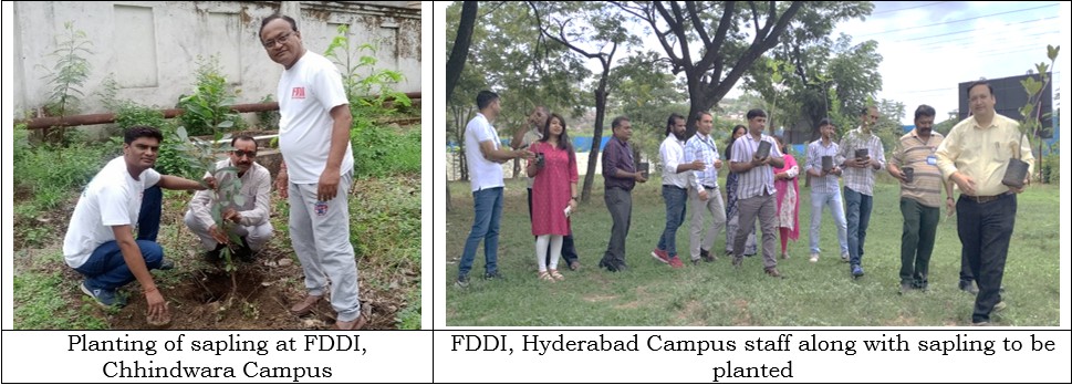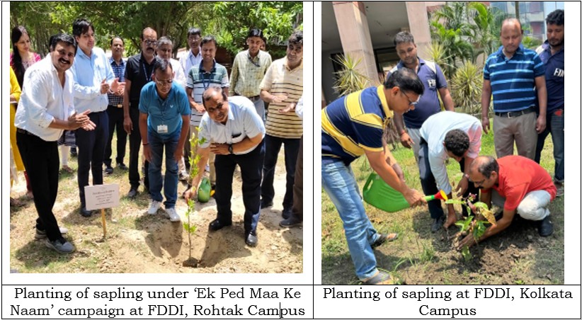 At FDDI, Rohtak Campus under the campaign, ‘Ek Ped Maa Ke Naam’, planting of sapling was done by Mr. Manoj Sharma (Head of Production) and Mr. Devendra Punia (Head of Human Resources) of Amul Milk/Sabar Dairy.