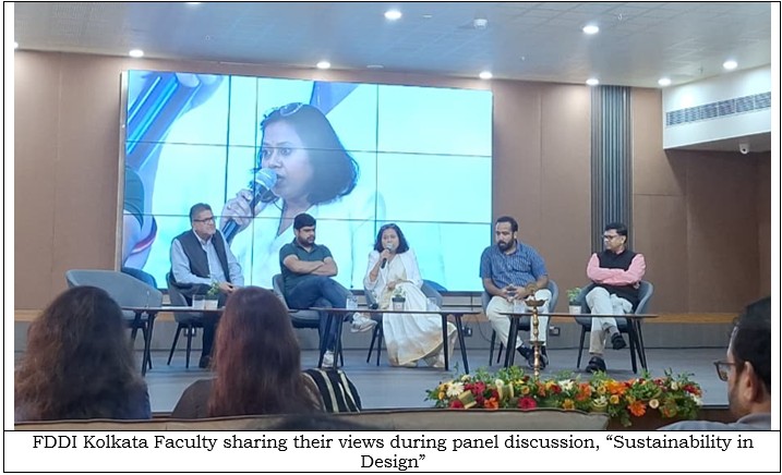 The second panel, “Sustainability in Design,” saw active participation from Udit Mittal (Principal Architect & Co-founder, QX Design), Kriti Jalan (Founder, Kriti Jalan Design Studio), Mrs. Anita Ray (HoD, Fashion Design, FDDI Kolkata), Mr. Prashant Nanda (HoD, Footwear Design, FDDI Kolkata), and Ajay Mittal (Sustainability Consultant, ESG & Carbon Market Specialist).