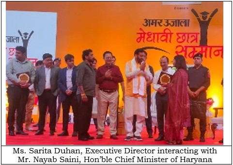 The ceremony was graced by Mr. Nayab Saini, Hon’ble Chief Minister of Haryana, who felicitated the meritorious students with certificates of excellence and gifts, encouraging them to pursue their aspirations with dedication.