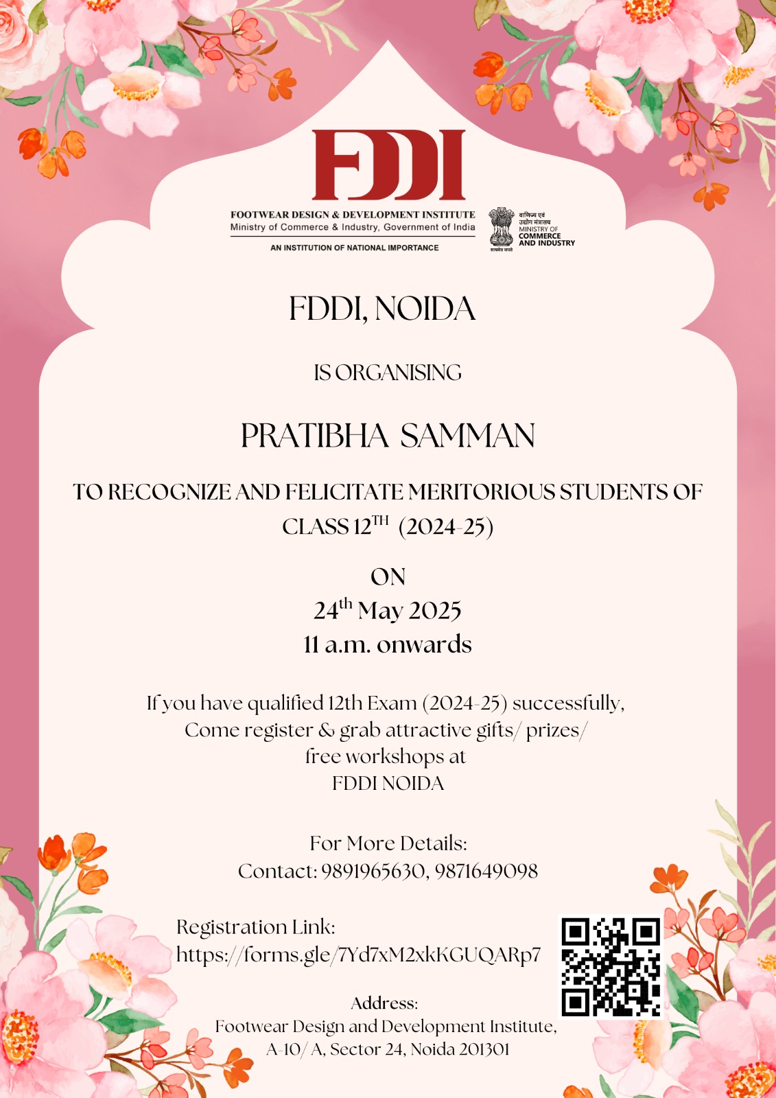We are pleased to introduce Pratibha Samman, an initiative by the Footwear Design & Development Institute (FDDI) to recognize and felicitate meritorious students of Class 12th (2024–25) from any recognized Central or State Education Board.