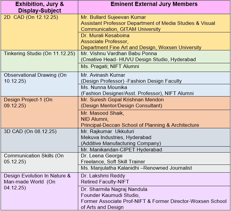 The creative outcomes of the Foundation Batch students’ first-semester projects, developed under the guidance and mentorship of the subject faculties, were assessed by eminent external jury members.