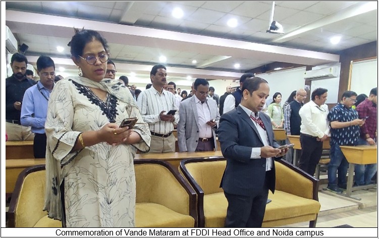 As part of the nationwide commemoration launched by the Ministry of Culture, Government of India, to mark 150th years of “Vande Mataram” (1875–2025), FDDI organized a Mass Singing of “Vande Mataram” across its Head Office and all 12 campuses—Noida, Fursatganj, Chennai, Kolkata, Rohtak, Chhindwara, Jodhpur, Patna, Ankleshwar, Hyderabad, Banur, and Guna.
