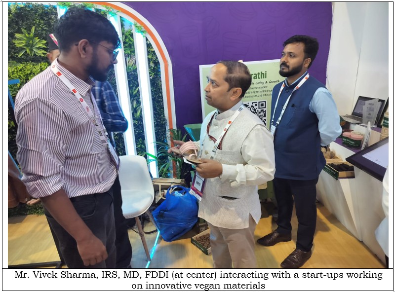 Mr. Vivek Sharma, IRS, Managing Director (MD), FDDI, along with the Business Development Team (Head Office), engaged with key stakeholders including the Under Secretary, Ministry of Food Processing Industries, and senior officials from NIFTEM. The team also connected with leading incubators such as CSIR-NIIST and explored partnerships with start-ups working on innovative vegan materials.